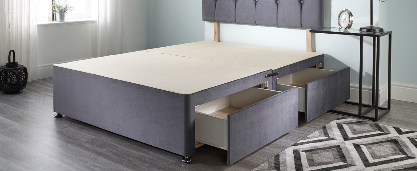 Bed Centre 4FT6 Double Divan Bed Ziggy Grey Plush Memory Foam Divan Bed Set With Mattress, 2 Drawers (Same Side) and Headboard (Double (135cm X 190cm))