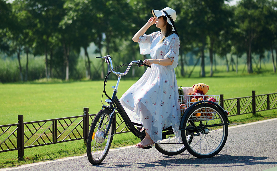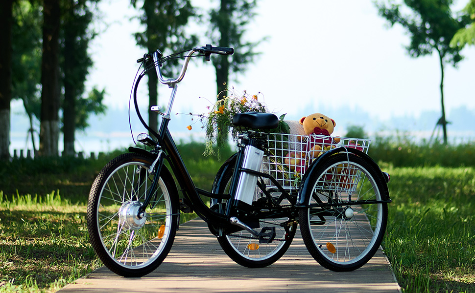 【Sports&Outdoors】3 Wheel Electric Bike for Adults with 250w Motor, Bike Tube, Removable 36V 10Ah Lithium Battery