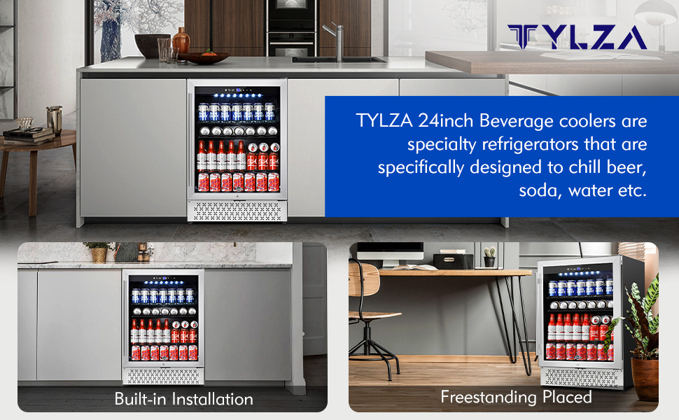 • 【Appliances】Tylza Beverage Refrigerator 24 Inch, 190 Can Built-in/Freestanding Beverage Cooler Fridge