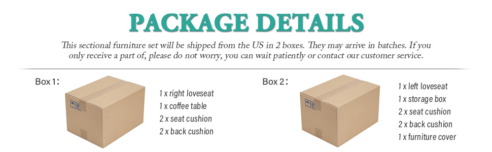 • This sectional furniture set will be shipped from the US in 2 boxes. They may arrive in batches.