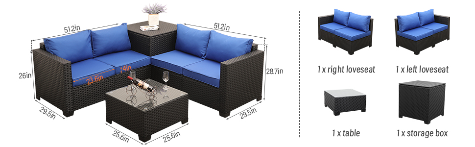 • STORAGE TABLE: This 4 piece furniture come with the storage table, when not in use the furniture, you can put the cushions into it to extend the service life.