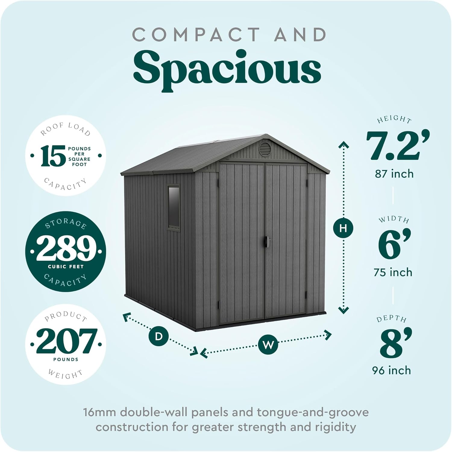 - Easy and Maintenance-Free: Constructed with 16mm double-wall panels and tongue-and-groove construction, the Darwin shed offers greater strength and rigidity; Requires no varnish or paint, providing a virtually no maintenance ownership experience